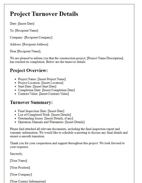 Read Online SAMPLE LETTER TURNOVER CONSTRUCTION PROJECT Hardcover